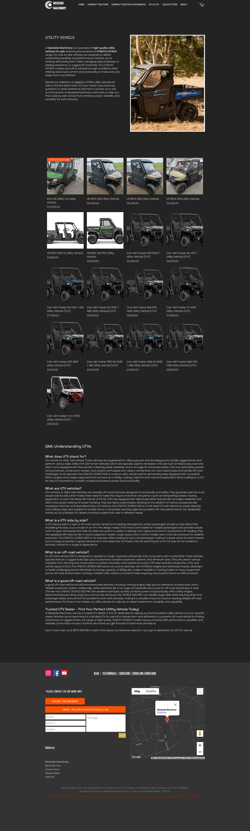 For those seeking reliable utility vehicles, Beckside Machinery features a range of CFMOTO UFORCE UTVs. These side-by-side vehicles are equipped with powerful engines, comfortable seating, and advanced safety features, making them perfect for heavy-duty farm tasks or off-road exploration. Models like the UFORCE 600 and UFORCE 1000 deliver exceptional versatility and efficiency for various applications.